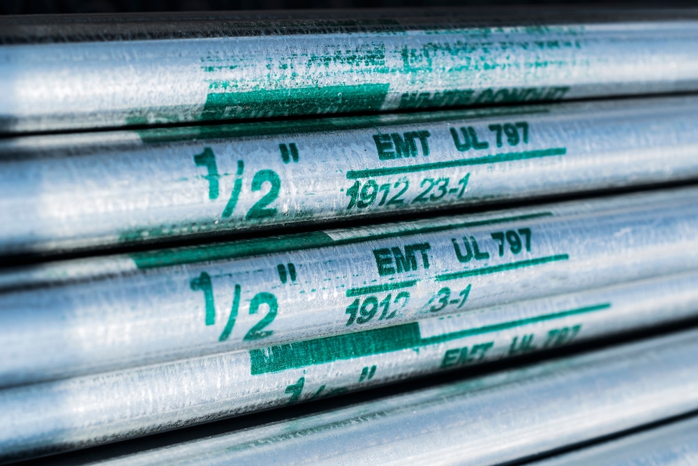 Approved for the same applications as RMC, IMC is a steel conduit that is slightly lighter than RMC and rated for outdoor use. It can be more cost-effective than RMC, available threaded or unthreaded, and may or may not be coated. Compared to GRC and RMC, IMC has much thinner walls that can handle more wire fill but is more susceptible to kink. IMC only goes up to 4 inches in trade sizes, so it is significantly smaller than other conduits.