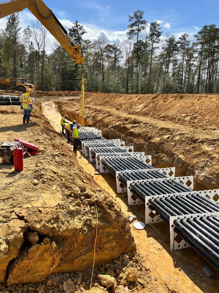 A large quantity of duct banks were installed for this underground burial.