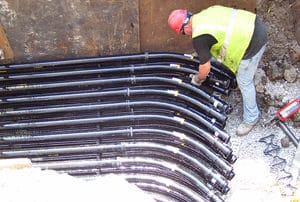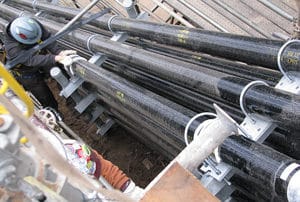 The strands are laid in a precise pattern, impregnated with resin as they are wound onto a straight mandrel. (This assures the installer easy use when doing field cuts.) They are then cured under high temperature, creating a conduit product that features high flexural strength and high temperature resistance.